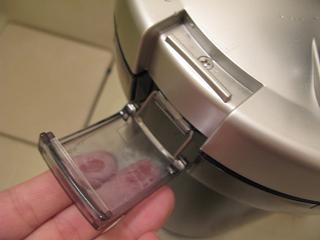2箇所ありこれを手前に引くと蓋が持ち上がり外れるしくみ。