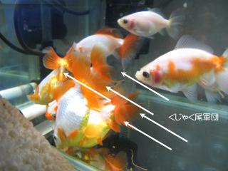 さらによく見るとひれの部分にも白い幕のようなものが固まっていました。