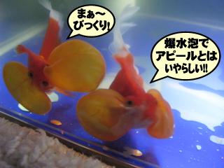 大きな水泡を左右につけて優雅に楽しそうに泳いでいますね~。